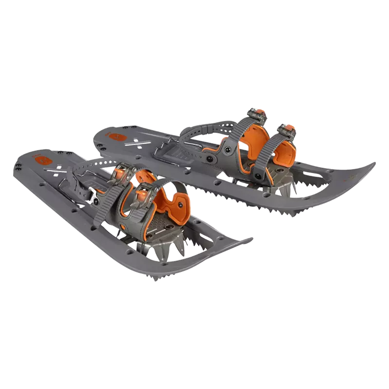 Ensimmäinen asia, joka kiinnittää huomion, on kengän runkorakenne. Se on elastinen, kevyt ja yllättävän vahva – yhdistelmä, joka ei ole itsestäänselvyys lumikenkien maailmassa. TSL:n “Hyperflex”-rakenne myötäilee maastoa niin hyvin, että kävely tuntuu luonnolliselta, ei kankealta. Large-koko (69 cm pitkä, 22,5 cm leveä) takaa sen, että jopa 140 kilon kokonaispaino varusteineen pysyy pinnalla ilman uppoamista. Siteet sopivat kengänkokoon 41–50, ja nousurauta kantapään alla tekee kiipeämisestä huomattavasti helpompaa. Tästä alkaa muodostua kuva: nämä kengät on tehty ihmiselle, joka todella liikkuu vaihtelevassa maastossa, ei vain tasaisella pellolla.